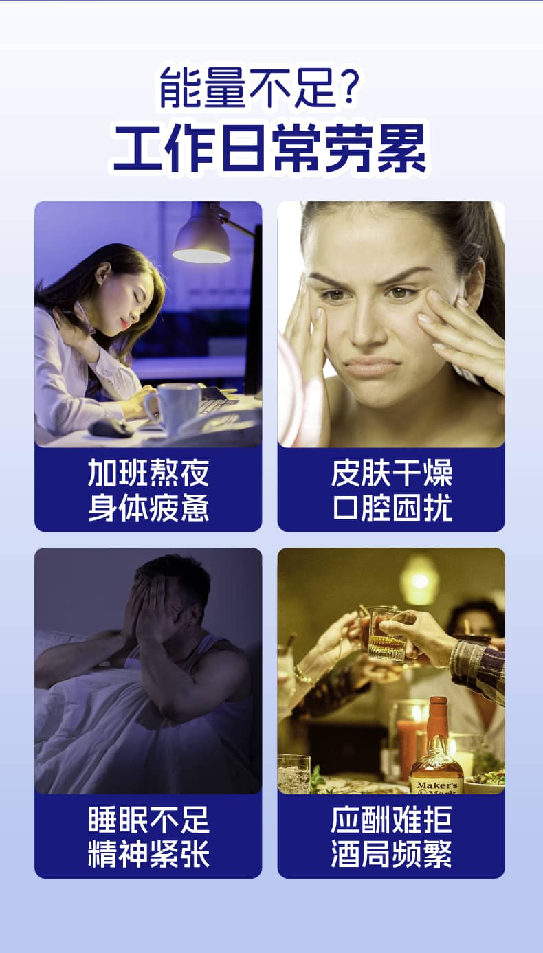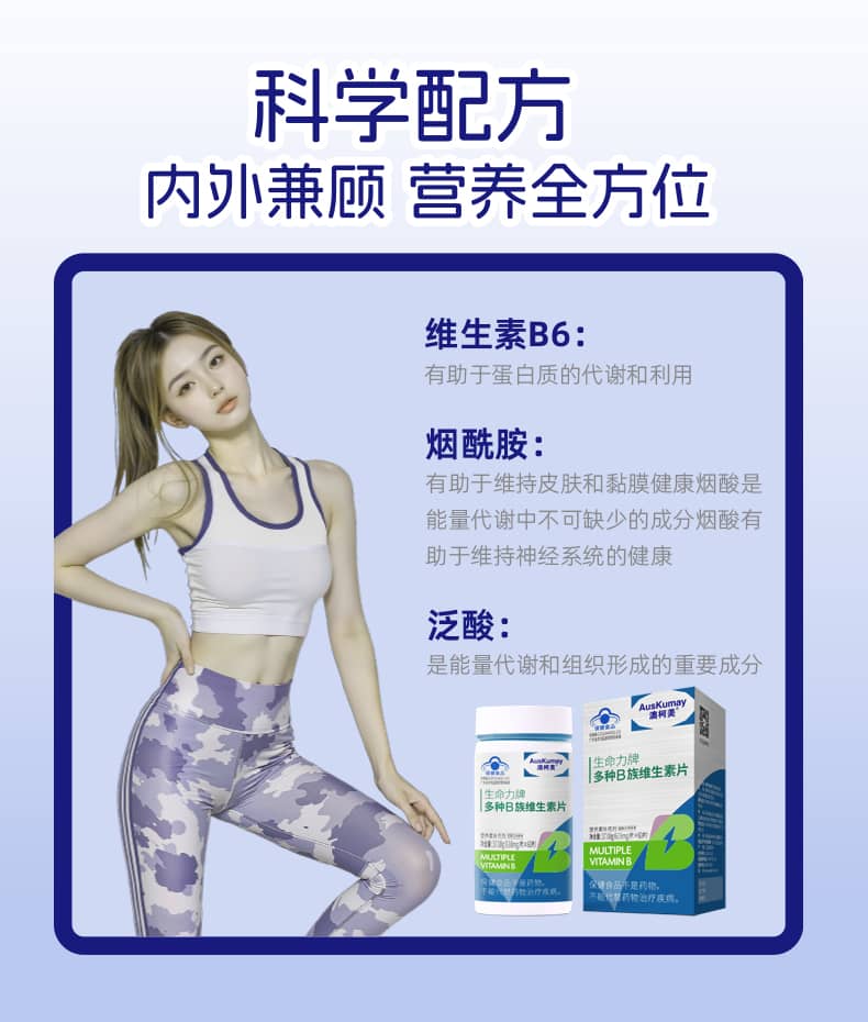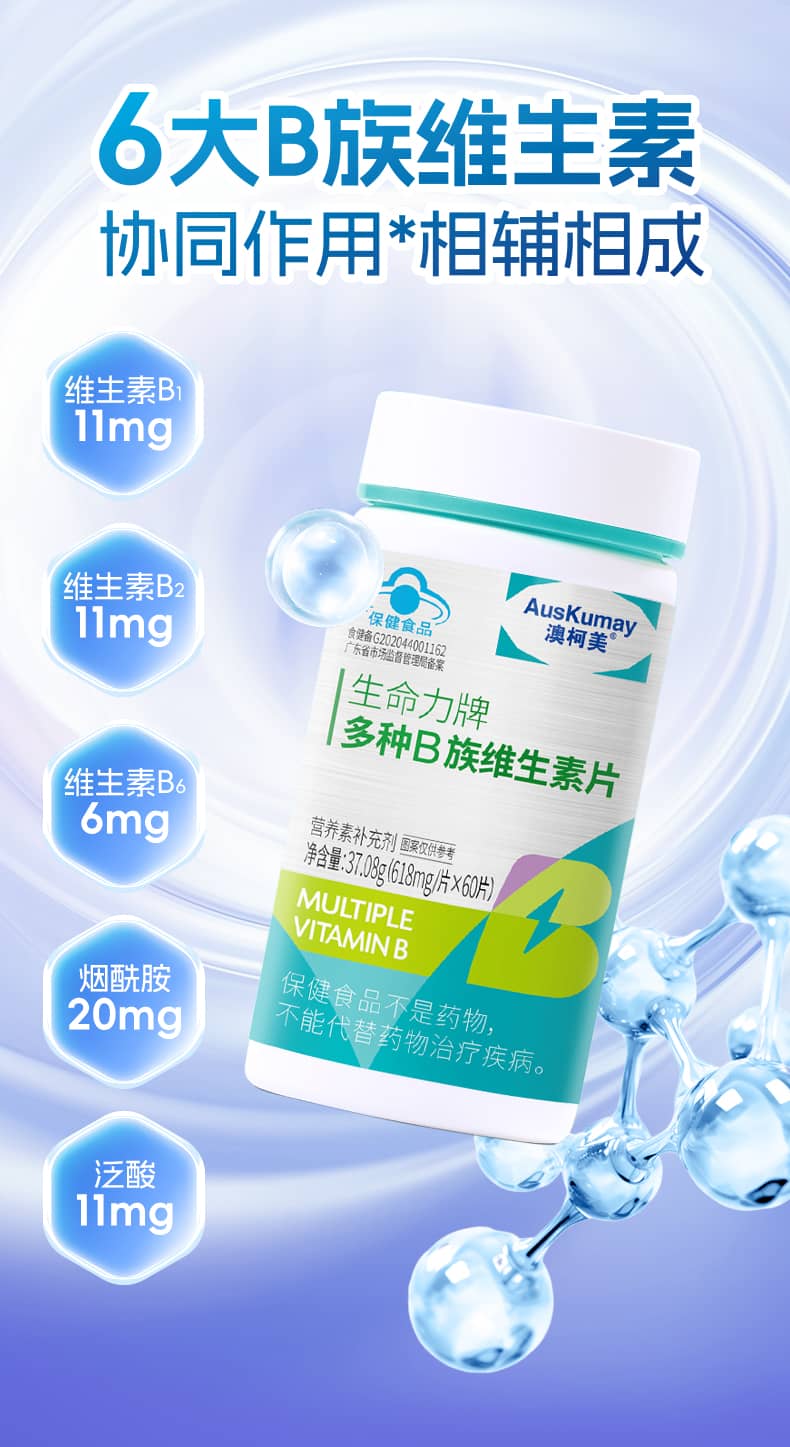 采用黄金配比协同补充多种B族,缓解压力疲劳,开启元气满格的一天。