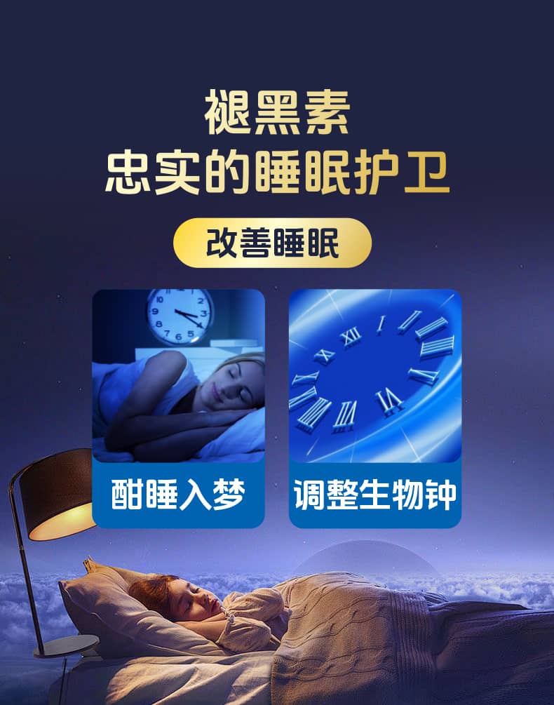 - 增强神经系统调节 维生素B6是神经系统的“好帮手”,参与神经递质如血清素、多巴胺、γ-氨基丁酸等合成 。这些神经递质可稳定情绪、缓解焦虑紧张,使身心放松,更易进入深度睡眠。褪黑素也能作用于神经系统,调节神经活动,二者结合从多方面调节神经系统,为良好睡眠营造适宜神经环境。