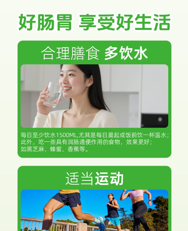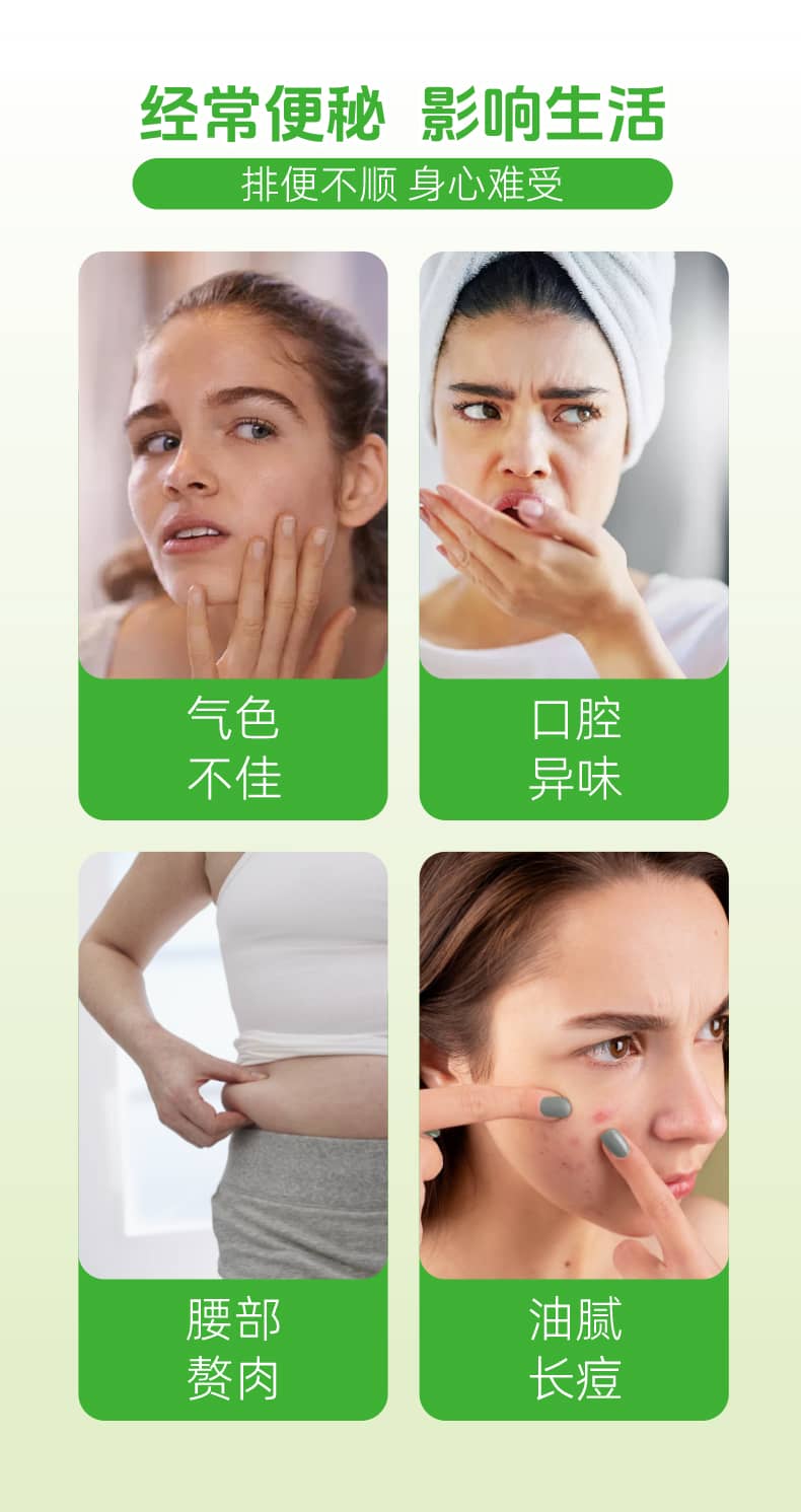 - 温和排便:不添加巴豆、番泻叶、大黄等致泻成分,安全放心