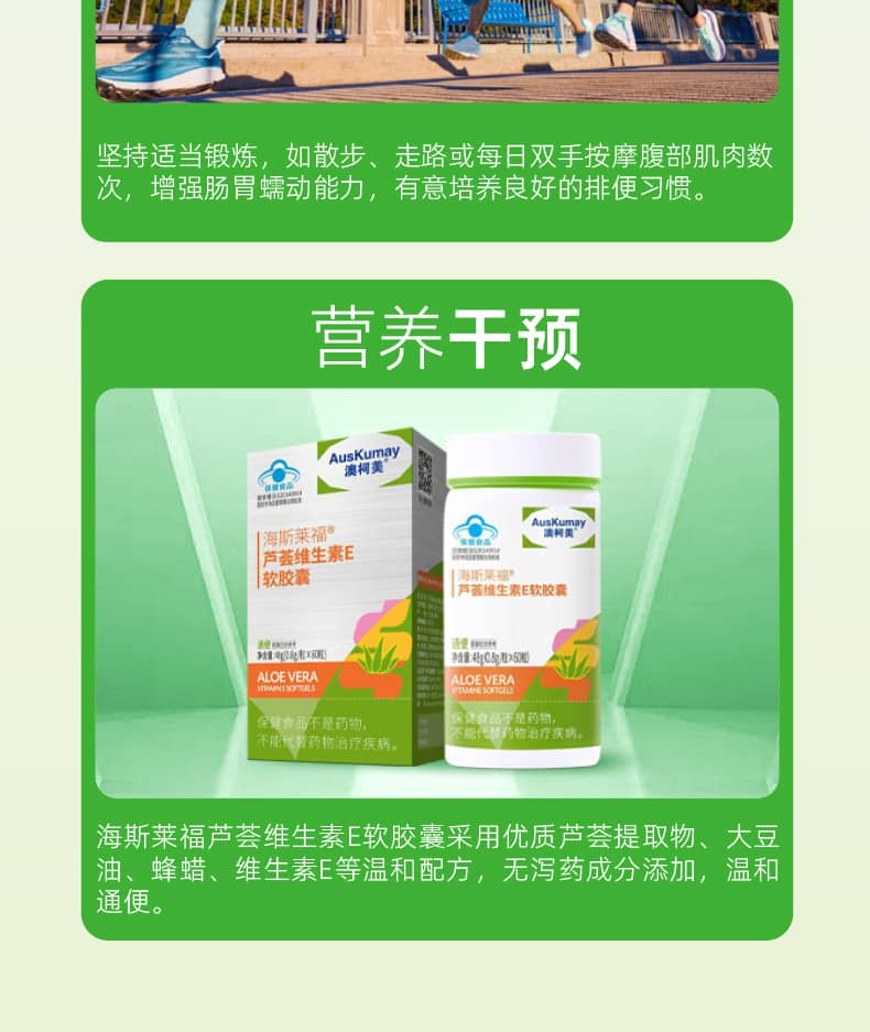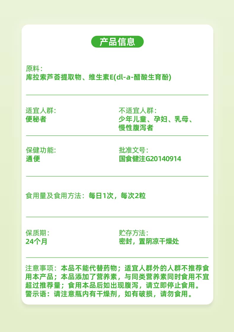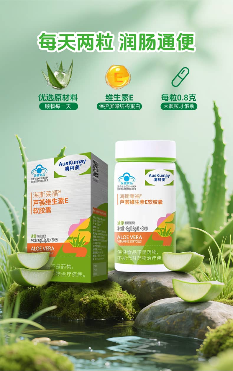 - 双效协同:芦荟+维生素E,润肠通便更稳定有效