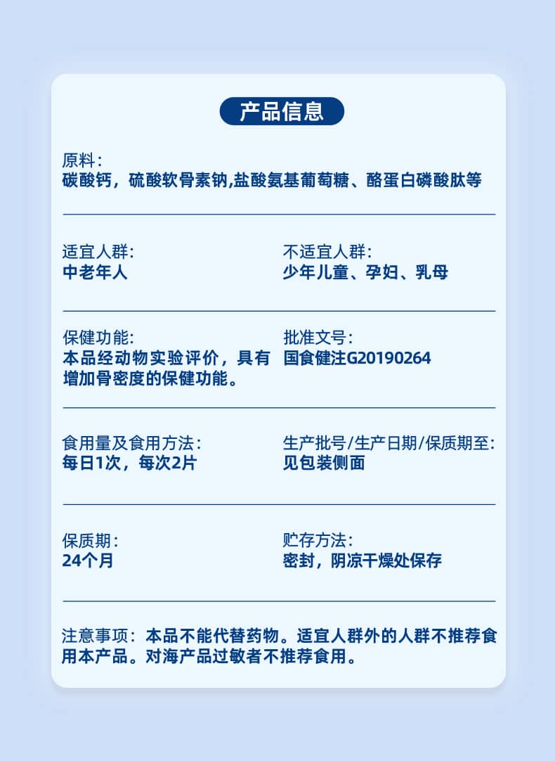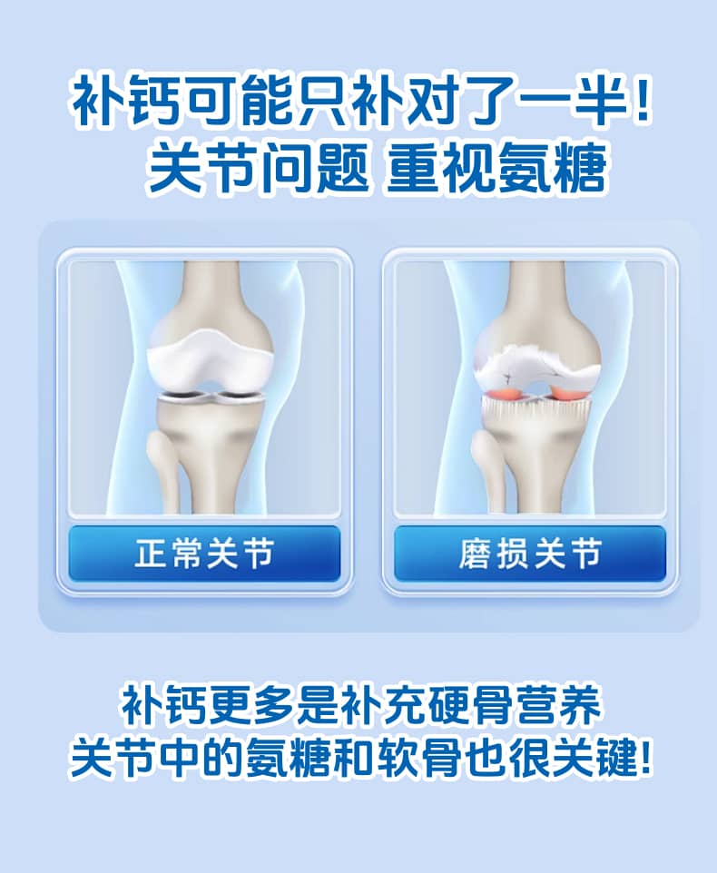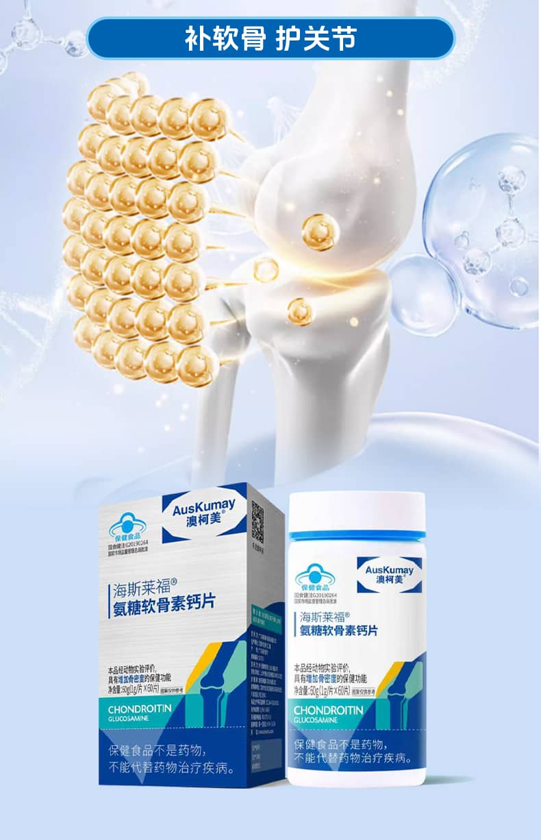 - 四效合一:氨糖+软骨素+CPP+钙,科学配比,协同养护关节
